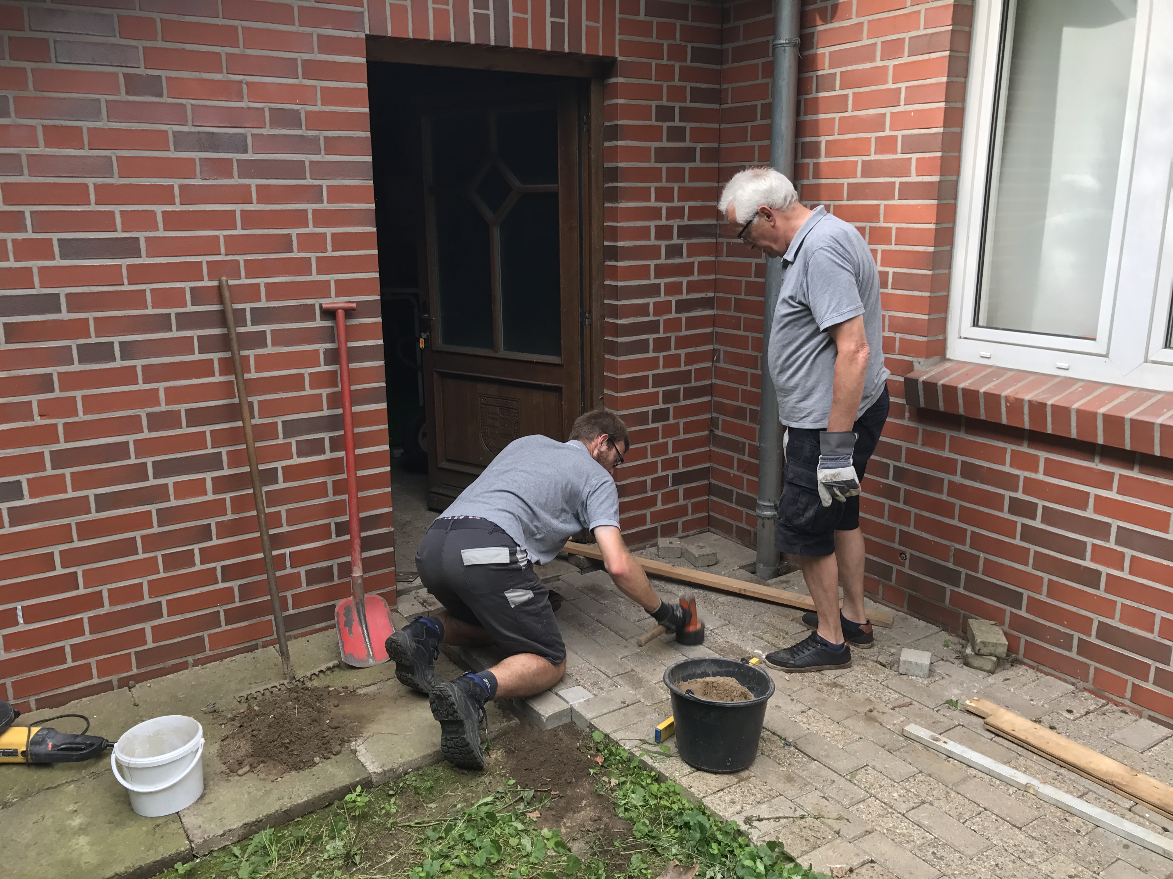 PPC - Pöppelmeyers Pflaster Club! Ernst und Patrick pflasterten hinter der Halle die restlichen Lücken zu!